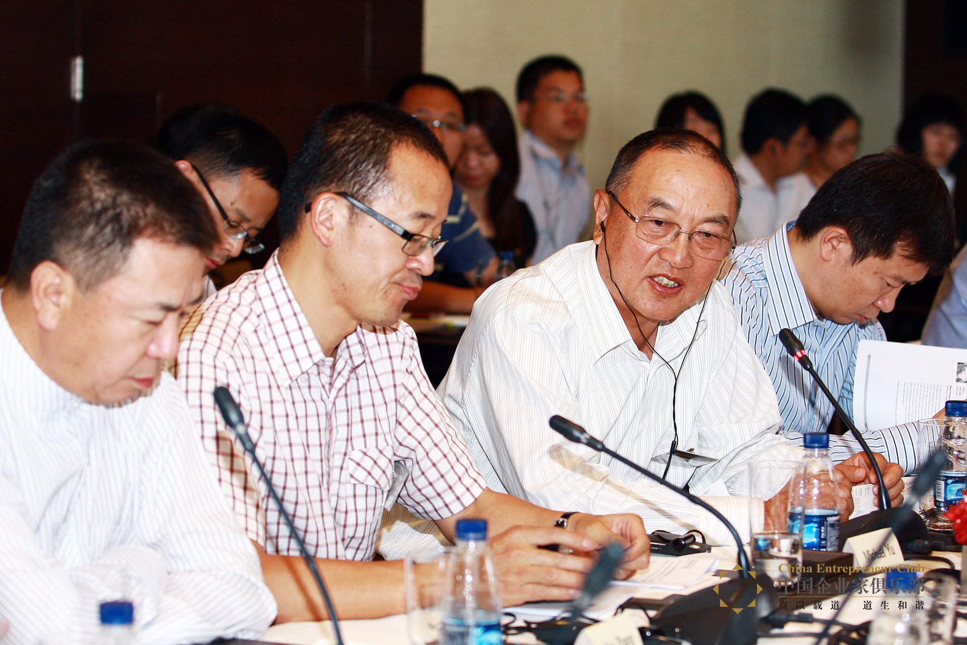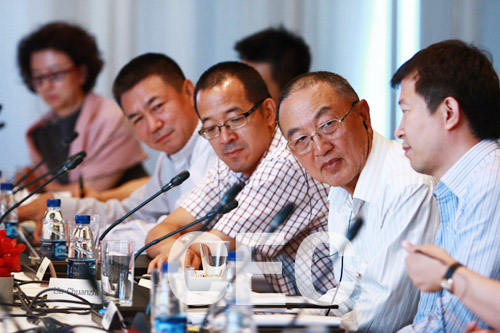中國企業家俱樂部與哈佛商學院教授團圓桌研討會6月11日下午在北京柏悅酒店舉行。柳傳志、俞敏洪、唐越、張醒生、艾欣、夏華、汪潮涌、李振福等近10位理事與15位來自哈佛商學院的教授們,以及中國綠色公司百強的代表們,就新一輪全球化戰略選擇、中美公司治理比較,以及職業經理人的主人翁意識、中國高儲蓄率、向消費市場轉變等中美兩國關心的熱點問題,進行了熱烈且富有成效的交流與研討。