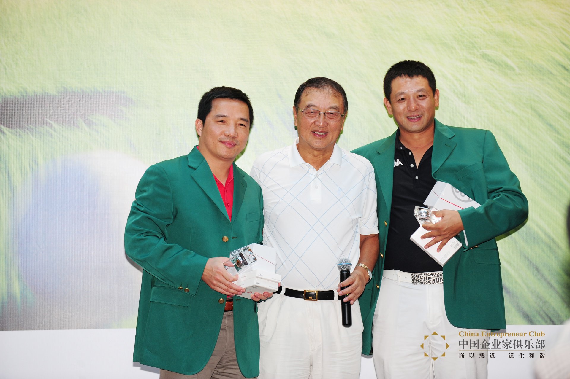 比賽收桿,嘉賓們移師喜慶堂中餐廳,進行頒獎儀式。儀式主持由中央電視臺高爾夫節目主持人汪洋黨綱,大家首先欣賞了前三站比賽的集錦短片和本場的精彩照片,之后,大獎開始陸續頒出。朱勝華以330碼獲用友最具遠見獎;崔苑獲麗池距洞最近獎;劉東華以11桿的桿差獲得心隨波動獎,獎品是極具特殊意義的由柳傳志現場簽名的聯想筆記本電腦;艾豐得到聯想風尚獎,獎品同樣為柳總簽名的聯想電腦;艾欣被授予了進步最大獎;劉二海得到BB獎;貢獻獎由柳傳志獲得,全體參賽嘉賓的簽名球衫作為獎品頒發給了柳總。大獎方面,王崇九和盧文椿榮膺南隊凈桿冠軍和總桿冠軍,柳傳志和呂朝暉奪得了北隊精桿冠軍和總桿冠軍。最后,支持人宣布北隊以前六名75.6桿的好成績力克南隊,主場獲勝。