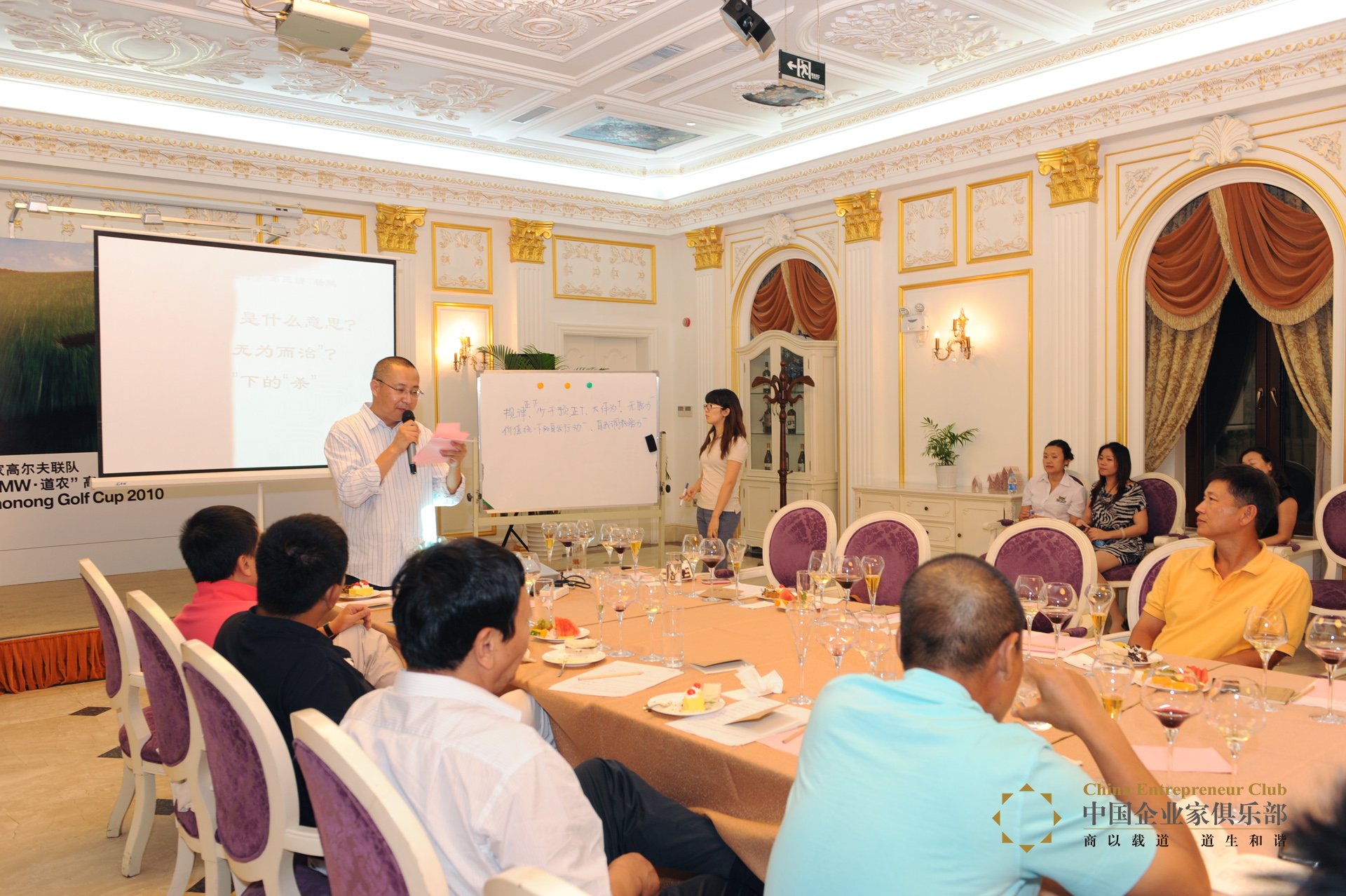 晚上,部分嘉賓來到位于密云的張裕愛斐堡酒莊,參加沙龍活動,學習、分享"道德經"。第二天一早,余興未盡的二十余位嘉賓在九松山高爾夫球場又進行了一場友誼賽。