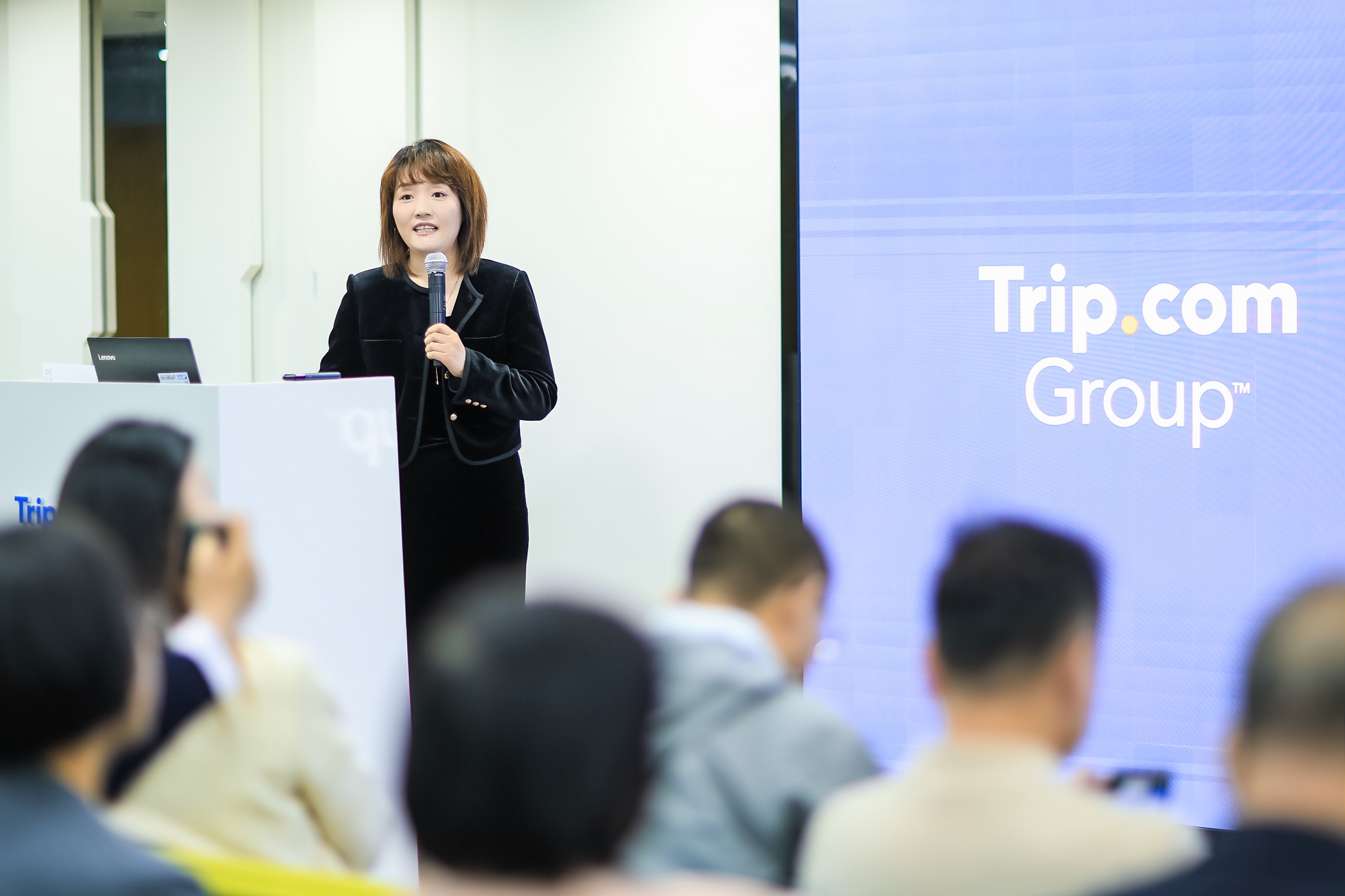 攜程聯(lián)合創(chuàng)始人兼執(zhí)行董事局主席梁建章與現(xiàn)場的70余位企業(yè)家和高管進(jìn)行了問答互動。攜程商旅CEO宋濤、攜程集團(tuán)可持續(xù)發(fā)展公共事務(wù)負(fù)責(zé)人彭小瑋、攜程AI產(chǎn)品負(fù)責(zé)人韋入溥分別圍繞“全球商旅趨勢洞察”、“中國旅游消費(fèi)者畫像及發(fā)展”和“旅游AI應(yīng)用”的主題進(jìn)行了分享。