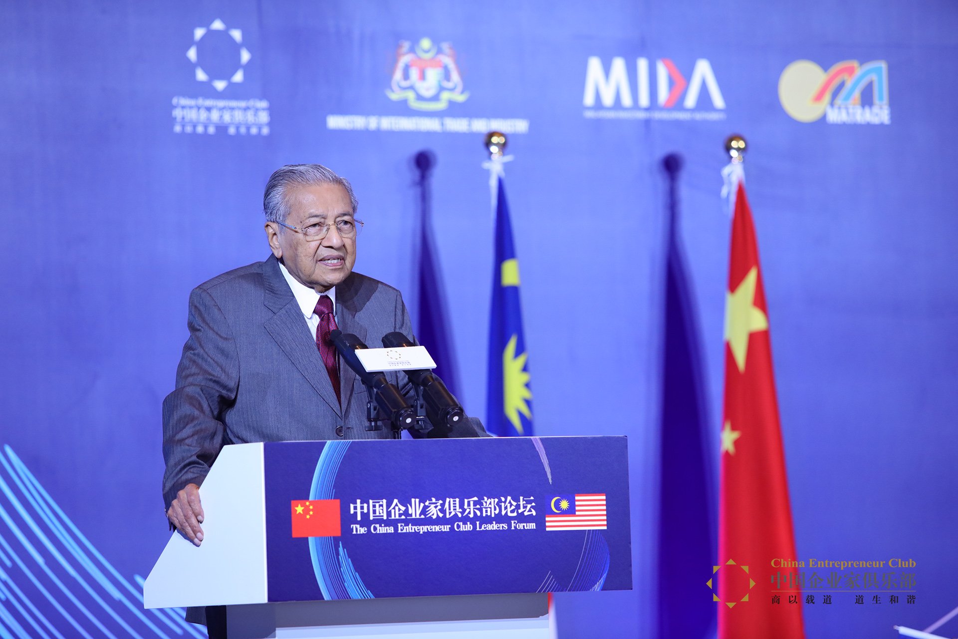 2018年8月19日,由中國企業家俱樂部主辦的“中國企業家俱樂部論壇”在北京舉行,馬來西亞總理馬哈蒂爾·穆罕默德在現場發表了演講,并與包括馬云、馬蔚華、劉永好、劉東華、陳東升、沈國軍、張茵、夏華、唐越、馮軍、程虹等中國企業家俱樂部理事在內的近400位政商學界嘉賓及媒體代表進行了對話。