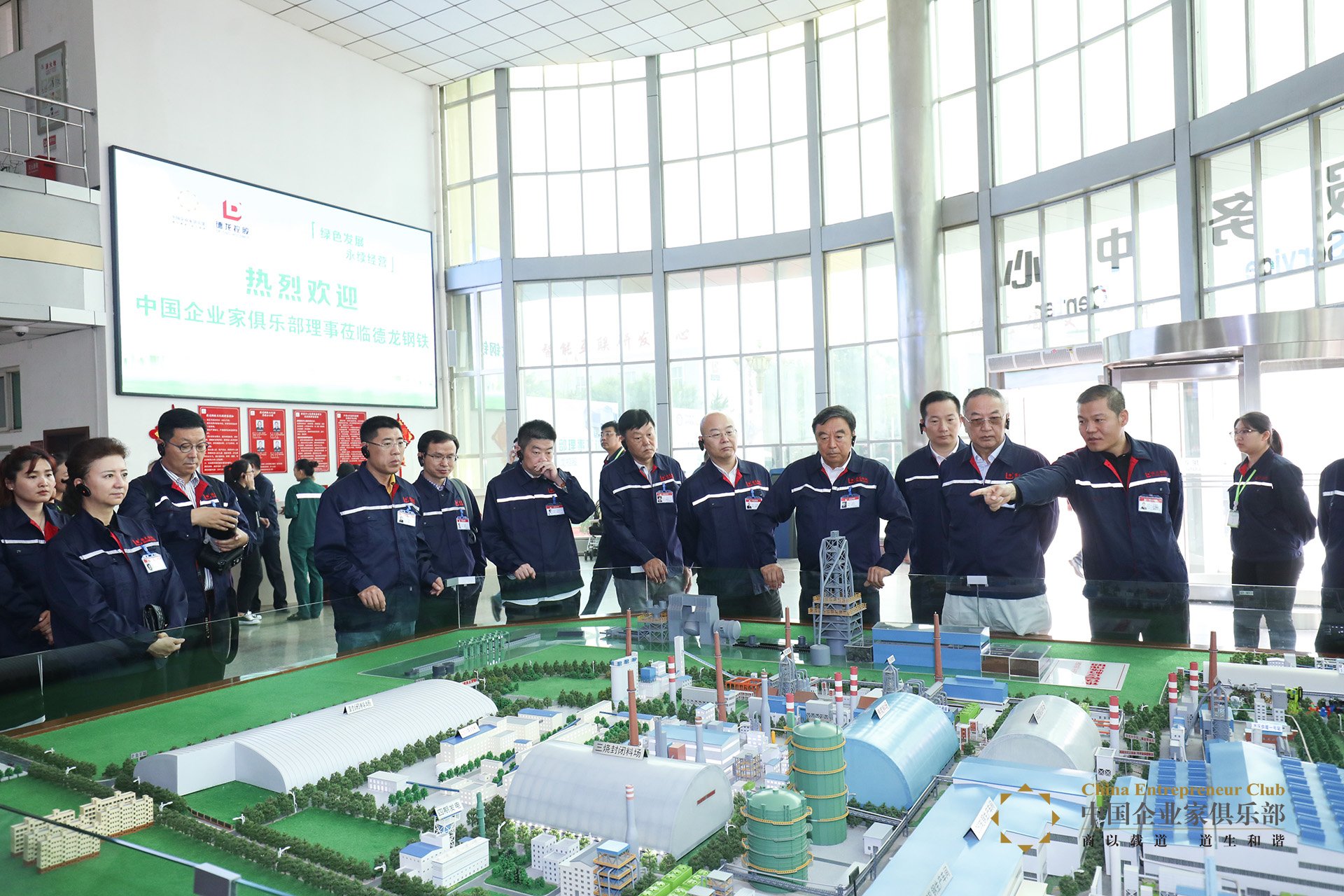 2018年5月25日,中國企業家俱樂部第38站理事互訪來到位于河北邢臺的德龍鋼鐵。在德龍的AAA級廠區,理事們一行參觀了廠區沙盤、德龍金剛園、132封閉料場、水處理中心、煉鐵高爐出鐵場、德龍鋼鐵博物館等。