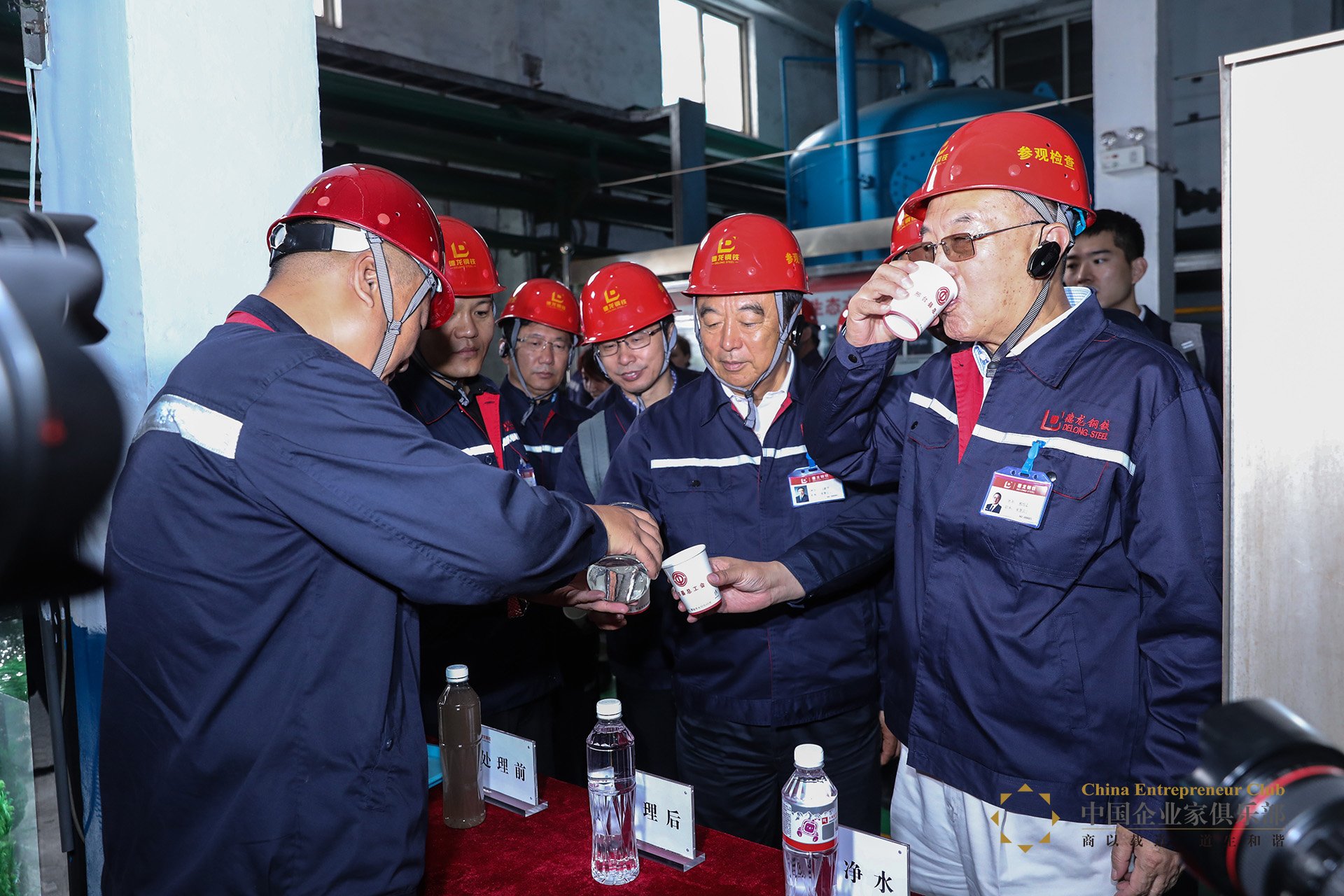 從2017年終到2018年初,華北地區冬季的藍天比例迎來近年新高,而為了這片藍天,德龍鋼鐵從創始到現在,已經做了12.8億元的環保投入。丁立國還透露,德龍鋼鐵將在2018年內建成無煙無蒸汽鋼廠,這在全國乃至全世界范圍內是史無前例的。現在的德龍鋼鐵廠區內,已實現廢水全封閉循環使用,經過處理的污水達到國家飲用水標準。在參觀水處理中心時,俱樂部理事們飲用了經過處理過的“德龍水”。