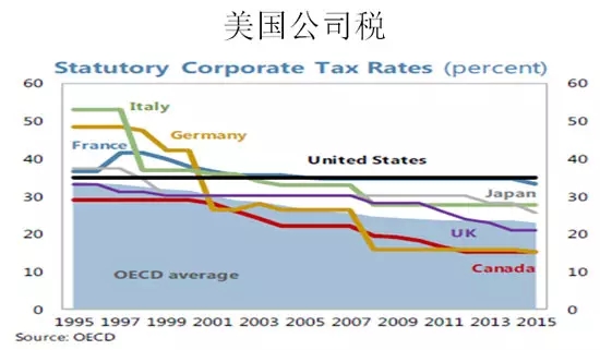 公司稅,趨勢總體是由高往下走,因為公司稅具有國際競爭的原則,公司稅下降10個百分點,可以增加10到15個點的利潤,誰不到你這里設(shè)廠?全世界的公司稅都在下降,藍區(qū)從二十年前的32%跌到22%左右,跌了十個百分點。我們在座的有愛爾蘭大使,愛爾蘭的公司稅是最低的,加拿大的公司稅15%左右,美國35%。美國要把公司稅降下來也是有想法的,所以它的這些政策,貨幣改革,寬財政都會做,貿(mào)易仗也會打,特朗普這個人最大的特點就是不靠譜。