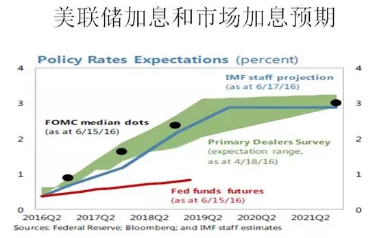 一、美聯(lián)儲開始加息,這個是可能加息的軌跡,比如說到2021利息加到3%左右,這個綠的是美聯(lián)儲可能的曲線。但是這個市場從來不相信美聯(lián)儲會如此強烈的加息,市場的預(yù)期是紅線,黑的點和紅線有一個巨大的差別,這就是我們說的風(fēng)險。為什么市場不相信美聯(lián)儲,因為美聯(lián)儲在過去從來沒有實現(xiàn)承諾,2015年美聯(lián)儲加息,加了一次沒有反應(yīng),2016年美聯(lián)儲加息市場沒有反應(yīng)。最終紅的曲線要向美聯(lián)儲的曲線靠攏,這個為什么重要呢。因為全世界的資產(chǎn)根據(jù)這個紅線,這個紅線的運動會改變?nèi)澜绲慕?jīng)濟。要把美國寬松貨幣政策放緩,引起了全球的金融市場的巨大的波動,資本流回美國,匯率大跌,理論上來說這句話動了什么,動了那根紅線,動了市場預(yù)期,把這根線往上移了,特朗普的政策又一次改變了紅線,這根紅線會往上移。我們只是不知道這根紅線以什么速度和強度往上移,如果是緩慢進行市場調(diào)整,如果是急劇的波動全球金融市場的波動,全球金融資產(chǎn)的再配置不可避免。這個是影響當今世界最大的一件事兒。