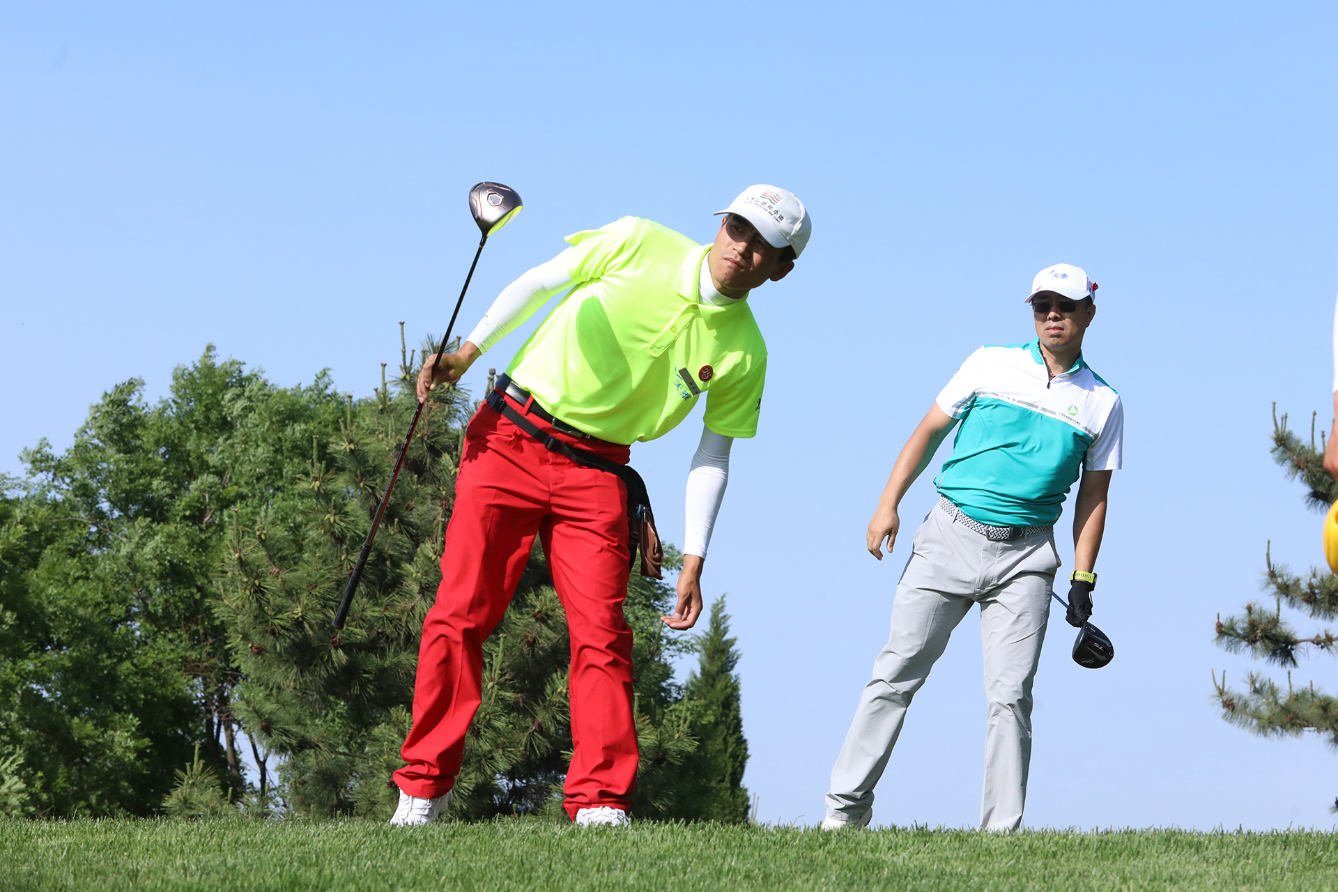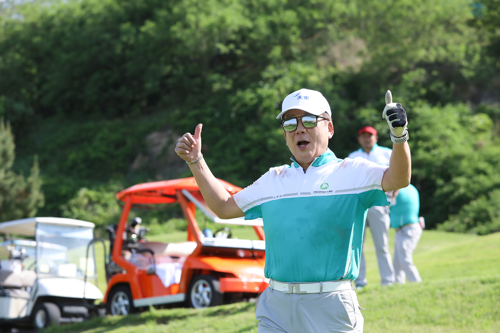 5月28日-29日,中國(guó)企業(yè)家高爾夫球隊(duì)的隊(duì)員們?cè)谔焯└郀柗蚯驁?chǎng)揮桿兩場(chǎng),“天泰·道農(nóng)杯”依舊采取去年以來(lái)球隊(duì)主要實(shí)行的“紅藍(lán)大賽”,由于天泰球場(chǎng)是山地球場(chǎng),高低錯(cuò)落,競(jìng)技難度大,但企業(yè)家隊(duì)友們?cè)谛沱惖那驁?chǎng)環(huán)境中充分的享受到了高爾夫球運(yùn)動(dòng)的樂(lè)趣。