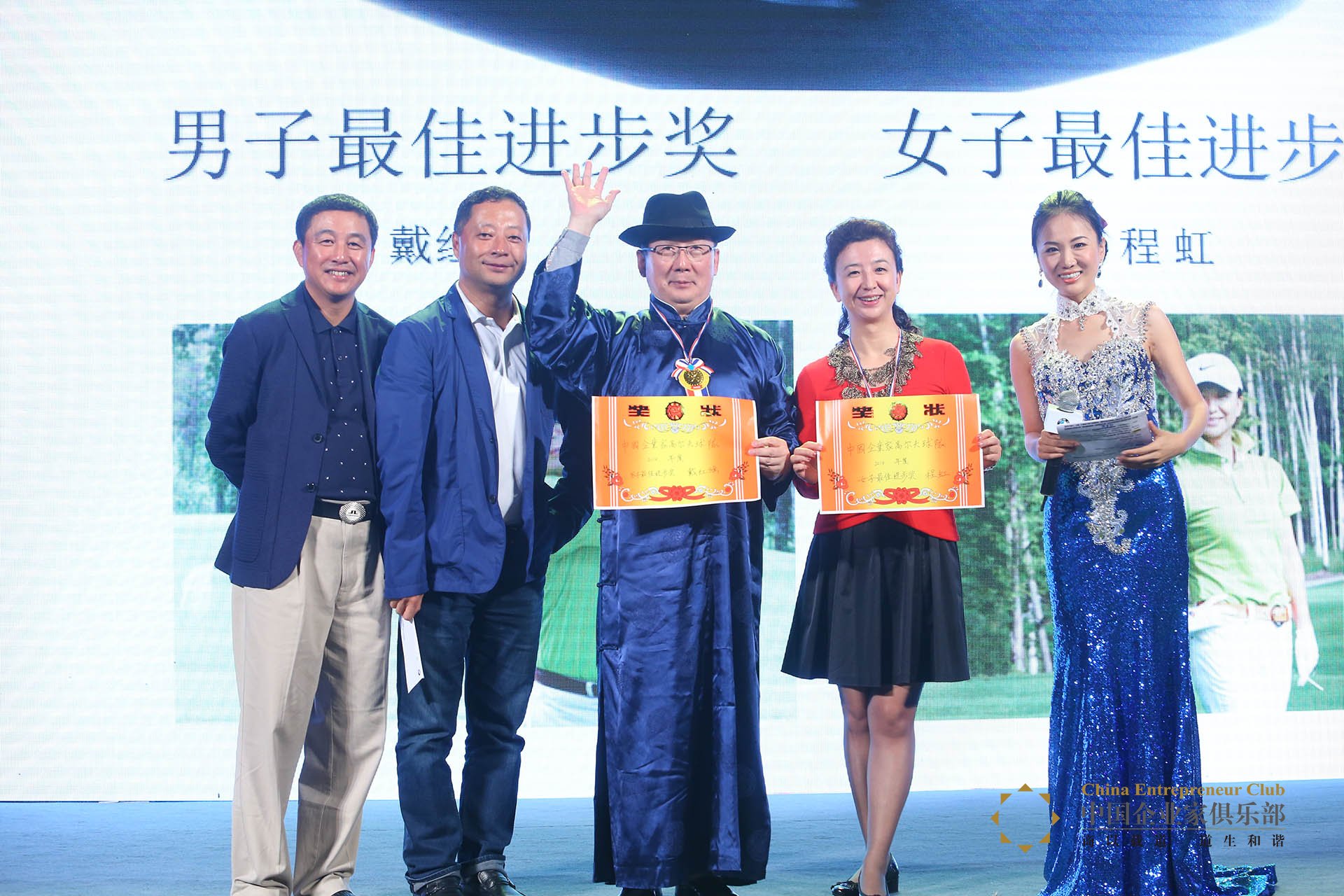 年度最佳進步獎獲得者戴紅旗(太搶鏡了吧)、程虹。