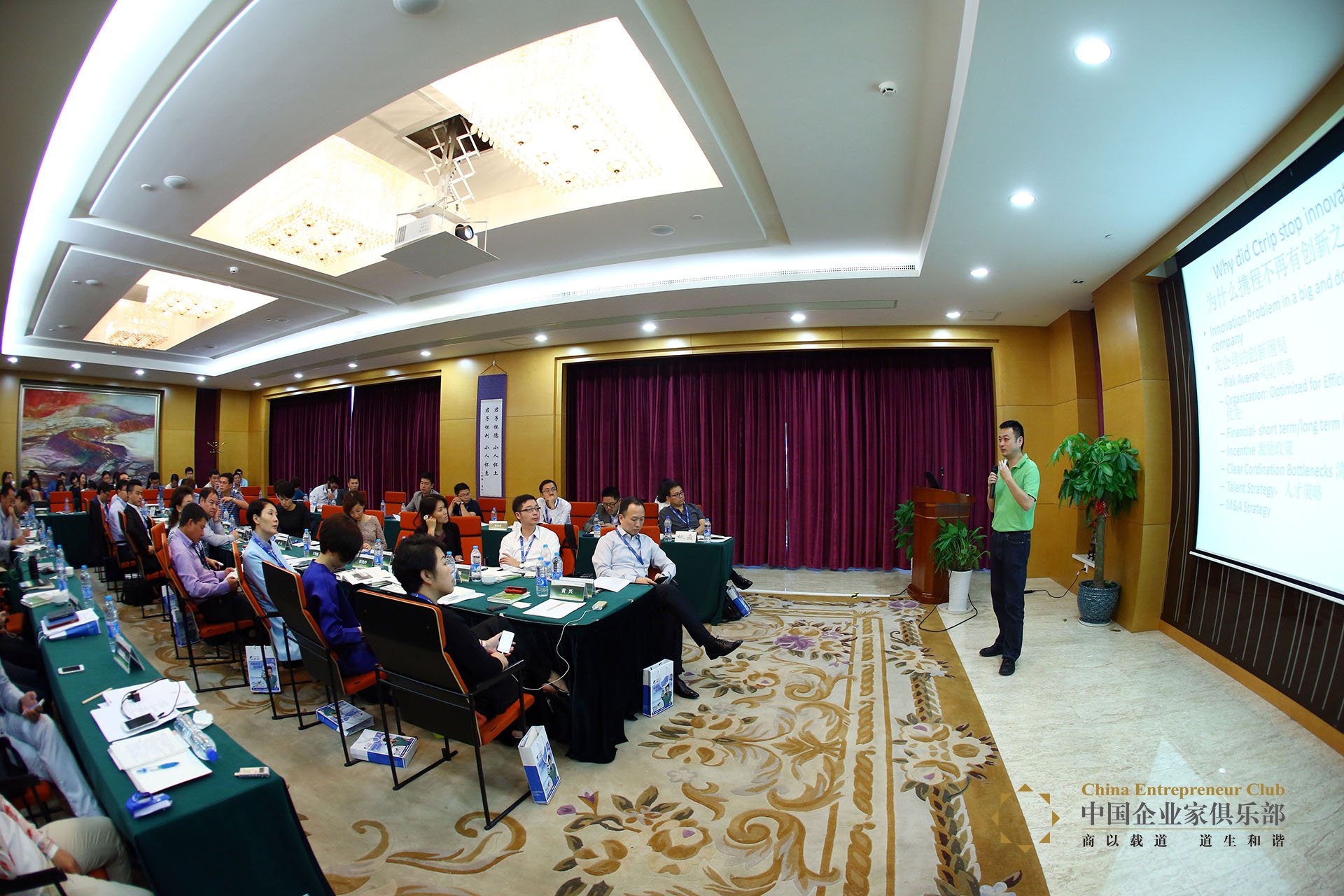 2014年9月18-19日,由中國企業家俱樂部主辦的“中國綠公司聯盟圓桌會”第七站在上海舉行,近70位嘉賓探訪了中國綠公司聯盟成員企業攜程。活動期間,攜程聯合創始人、董事局主席兼CEO梁建章以攜程為例向與會嘉賓剖析了大公司的創新困局,并分享了他的解決之道。