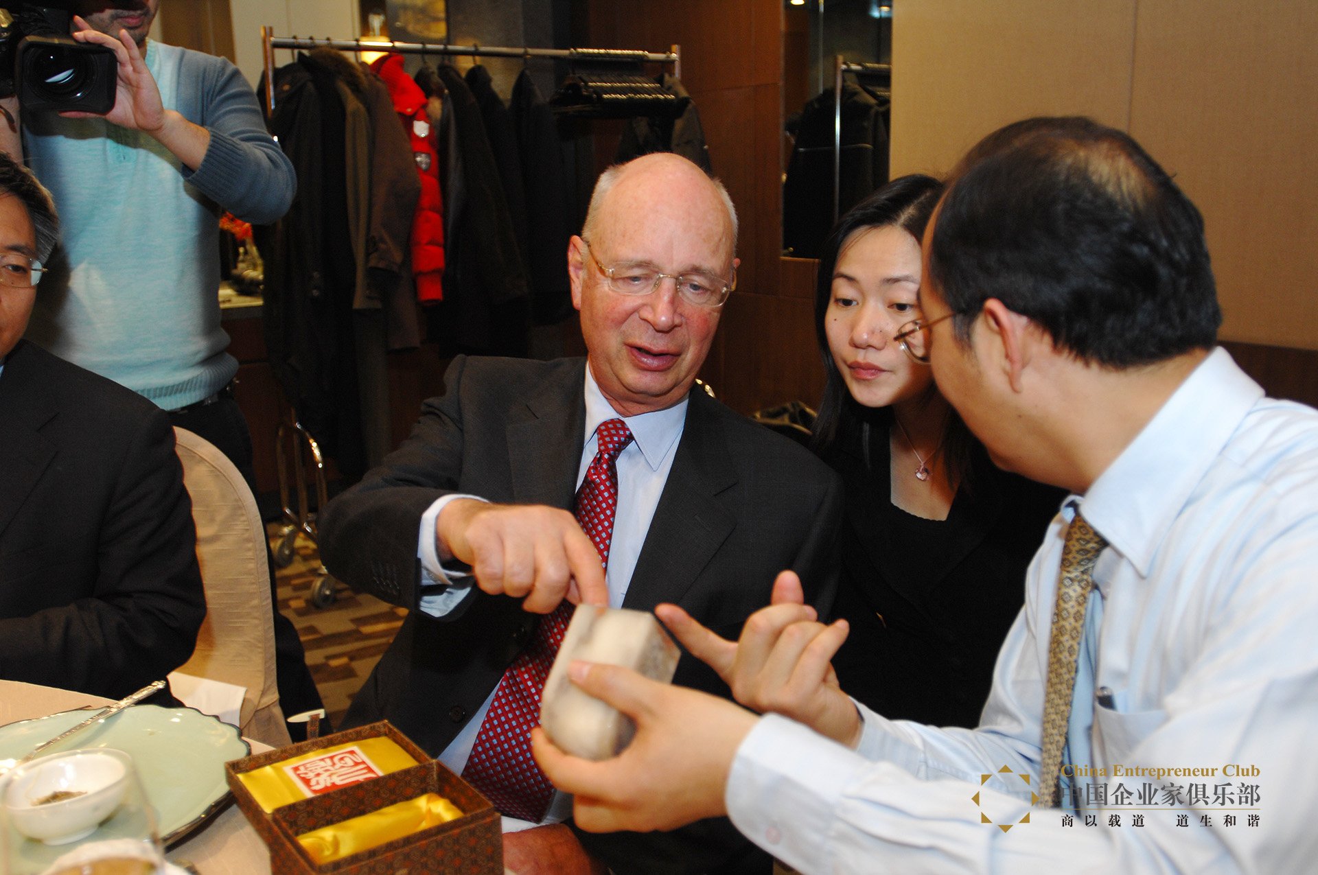 聚集著這么一群人,他們是阿里巴巴董事局主席馬云,蒙牛乳業董事長牛根生,中國寬帶產業基金主席田溯寧,盛禹銘集團公司董事長張醒生,天泰集團董事局主席王若雄,北大光華管理學院院長張維迎……一位尊貴的瑞士客人將與他們見面,這位客人是施瓦布,世界經濟論壇的創始人。