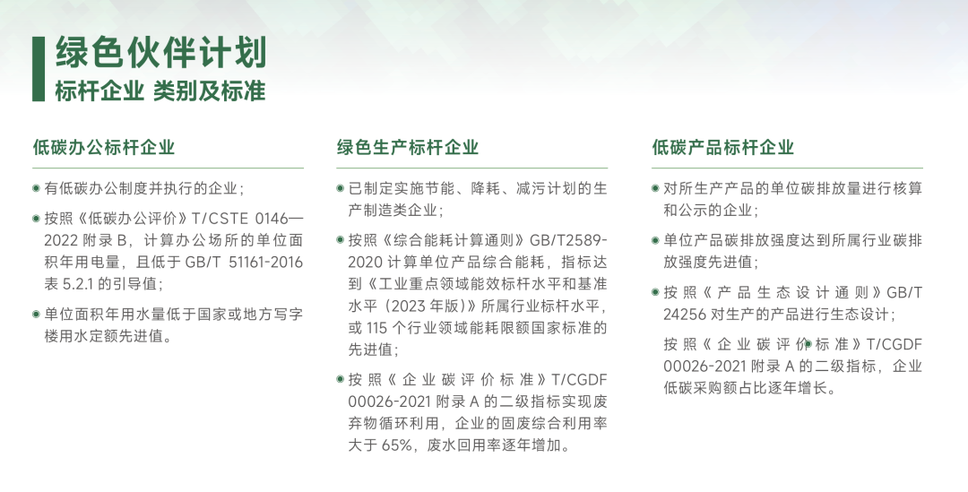 “綠色伙伴”計劃標桿企業3類標準