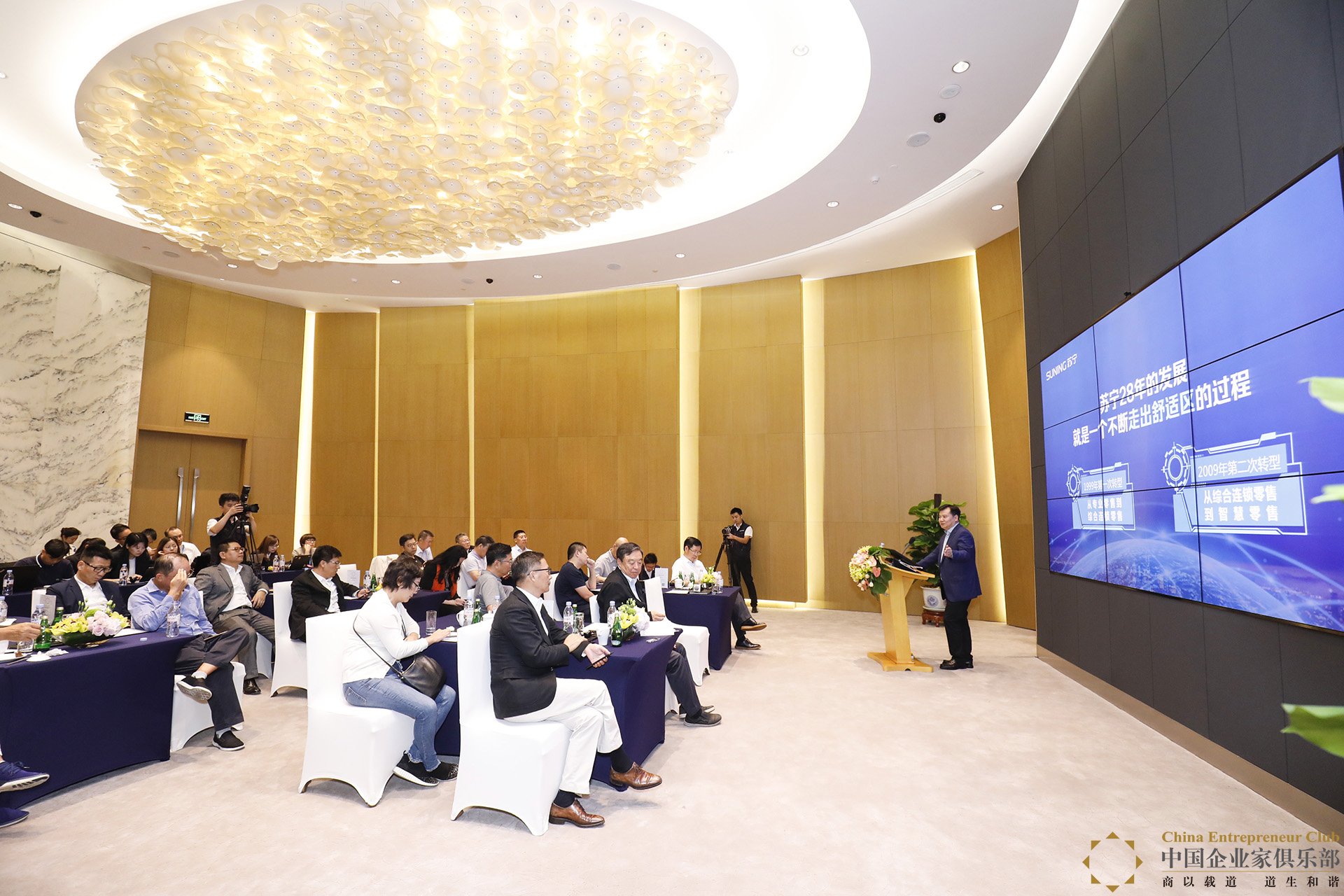中國企業家俱樂部理事、蘇寧控股董事長張近東向理事們介紹了蘇寧的價值觀和兩次轉型,“盡管現在的蘇寧交易規模過萬億,但在廣闊的零售行業里,我們仍然還有很長的路要走。”