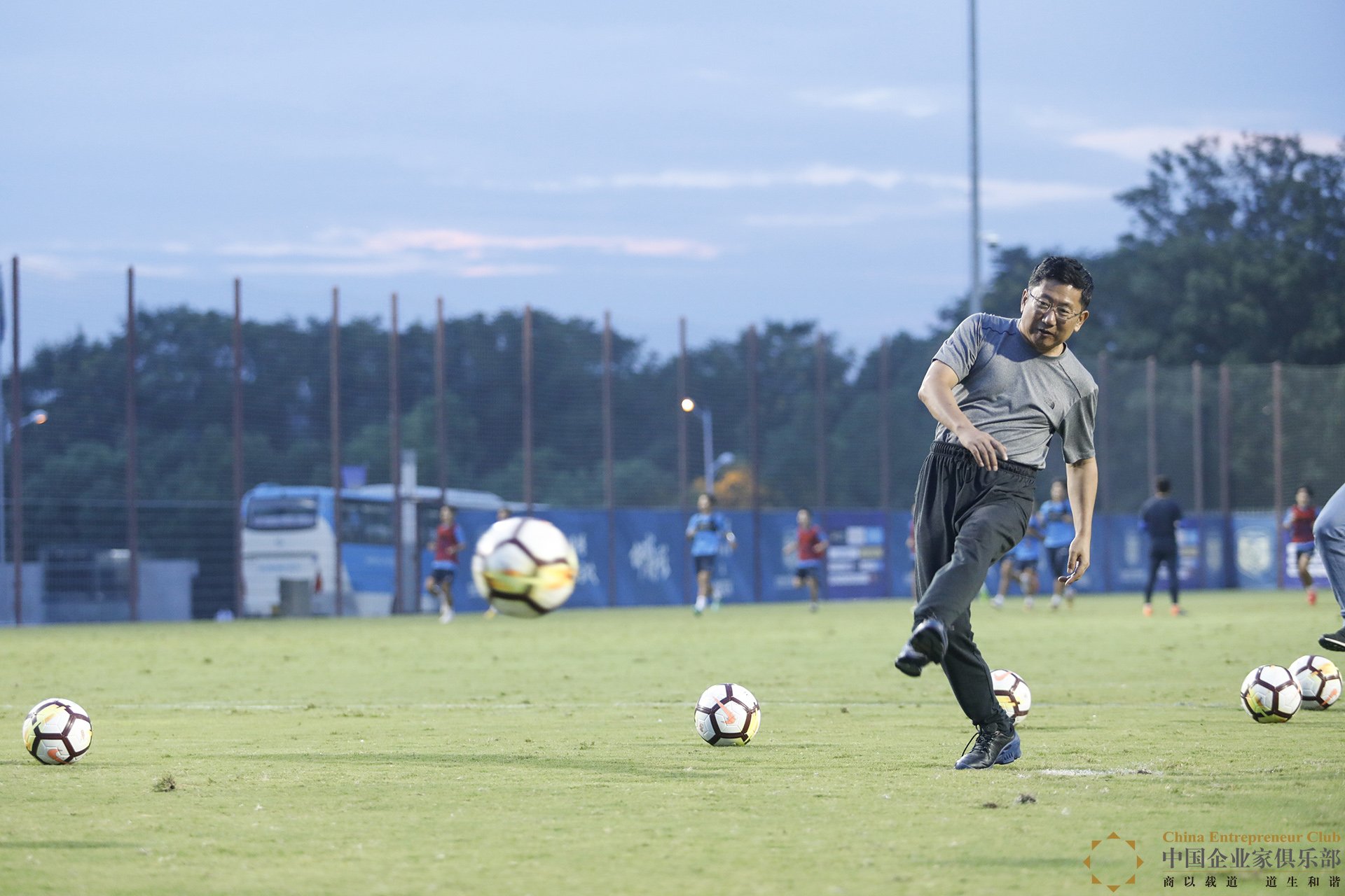 在蘇寧足球訓練基地,CEC理事們不僅觀摩體育智慧云平臺實施捕捉、分析球員集訓的大數據,還親自下場過了一把球癮。(來源:中國企業家俱樂部)