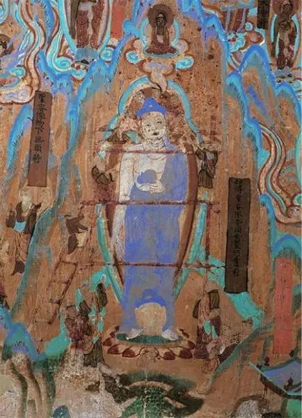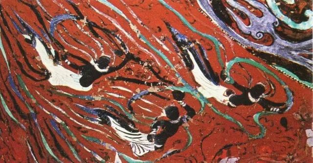 第400窟中的飛天,是敦煌藝術中最生動活潑的形象,甘肅旅游標志正是取自飛天的形象